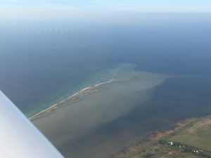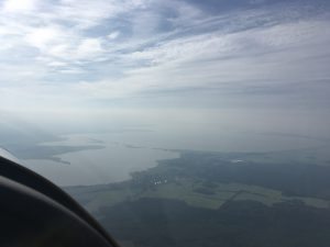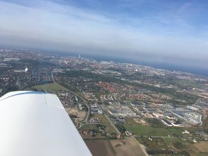 A 9900 pieds , le contrôle de Bremen demande si nous sommes conscients qu’à partir du niveau 100 une clearence est nécessaire et si nous la voulons. Affirmatif, on descend dès que ce sera possible. Près de la cote, il faut descendre en dessous de 2500 pieds pour ne pas entrer dans la TMA de Copenhagen . Contact avec Copenhagen info, puis Sweden control . Les côtes et la mer ont des couleurs pastel délavé, on s’interroge sur le rendu au niveau des photos. Après Malmø, il faut descendre en dessous de 1500 pieds.