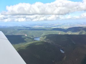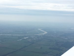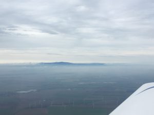 Le front passera sur Erfurt vers minuit. Le dimanche matin, le ciel est encore chargé, les nuages bas. Après le petit déjeuner on se rend au charlie pour observer l’évolution de la météo. A première h, on décollera, Luxembourg étant encore IFR mais le temps qu’on arrive, ce sera dégagé. Passage au nord de Frankfurt pour un vol très agréable.