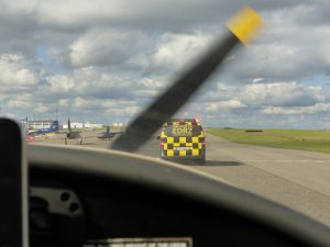 Plan de vol pour 13.30, arrivée au terrain à 13.08 et en 30 minutes top chrono, le plein, chargement du VL3, fermeture des hangars est fait.