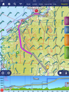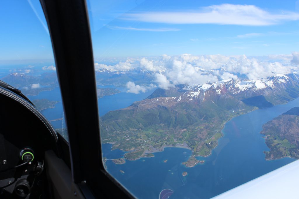 Nous ne pouvons pas rester à Kjeller car la base organise un grand meeting aérien le weekend end et nous ne sommes plus autorisés à stationner. Pour traverser la Norvège d’est en ouest nous aurons des sommets à 8.500 pieds. Le plafond n’est pas suffisant. Les prévisions sont meilleures sur la côte ouest. Nous pourrions redescendre jusque Bergen puis remonter mais le but du voyage est le cap nord. Devant le PC, un peu hésitants car les sites météo habituellement utilisés tels que Top météo ou SAT24 ne montrent pas le Cap Nord. Les pilotes du coin nous conseillent d’utiliser windyty et avinor. Ainsi les messieurs météo planifient le routing : Fagernes – Songdal – Molde – Kristiansund – Trondheim. Ce sera une heure de vol de plus que prévu.