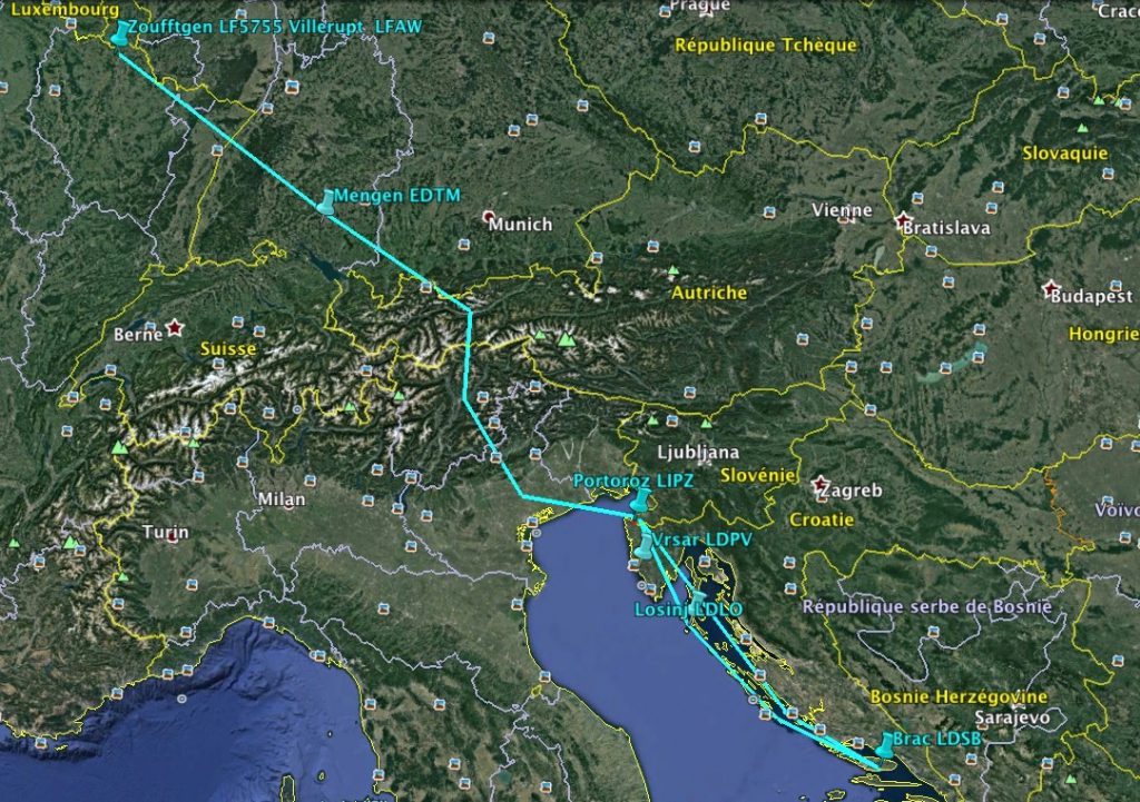 Le plan de vol a été établi par le littoral avec l’idée de pouvoir survoler une nouvelle fois Rovinj, mais le contrôleur ne l’entend pas de cette manière et à peine le contact établi, impose-t-il un routing dans les terres sans négociation possible.