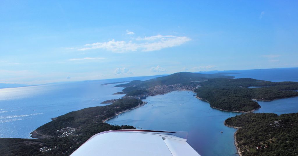 Corfou ne peut finalement accueillir qu’un seul ulm pour cause de trafic intense. L’idée de rechange est de faire simplement un stop essence + douanes et de descendre plus au sud sur Kefallinia ou Zakinthos. Bien qu’ayant forwarder toutes les données des ulm, pilotes, licences….les mêmes questions sont inlassablement reposées, on a le sentiment de tourner en rond.  Personne n’a envie de s’échiner encore plusieurs jours à parlementer pour une hypothétique seconde place, c’est décevant mais le sud de l’Europe regorge d’endroits magnifiques, alors on visitera gaiement d’autres îles croates puis ce sera l’Italie. Unije nous intéressait de par son côté sauvage, pas de chance l’aérodrome est déclassé, seule une autorisation durant 2 mois à obtenir le permettrait. Losinj semble accueillant, l’aéroport également douanier facilitera la suite du voyage. En dénichant un petit appart 2 ch sur booking.com, on peut continuer.