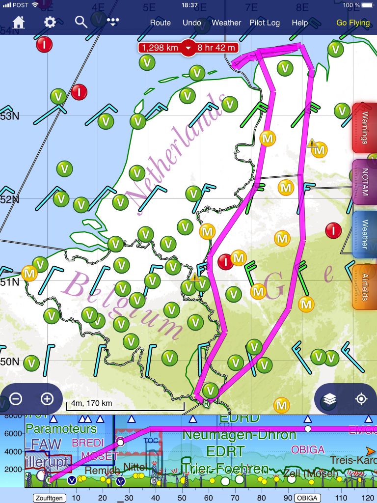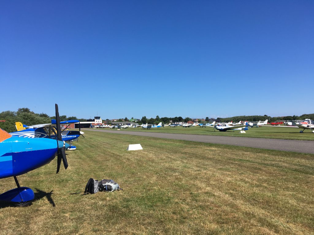 Décollage à 14.00, après ouverture du plan de vol et être sortie des espaces du Luxembourg, l’idée est de voler à 6500ft. La température de 27° rend la montée du Rans plus pataude que d’habitude, bien qu’ à 1POB, set d’amarrage et bagages légers. Afin de ne pas avoir à varier les altitudes, les espaces Charlie de Düsseldorf, Cologne et Bonn sont évités et la route choisie se déporte légèrement vers l’est. C’est dommage pour la jolie vue du Dôme de Cologne mais le barrage “Mohnesee Dam, d’Arnsberg” la remplace allègrement. Osnabrueck : la piste 27 est en service, à droite, une petite foret qui rendra l’atterrissage turbulent. Refueling avec du mogas, et le petit bleu est attaché avec essai de sa toute nouvelle housse (self made avec de la toile d’un parachute hors d’usage). Osnabrueck, comme bon nombre de terrains allemands compte un petit restaurant avec une agréable terrasse. Le terrain ouvrira demain à 9h00, après le repas, il n’y a plus qu’à rejoindre le airbnb.