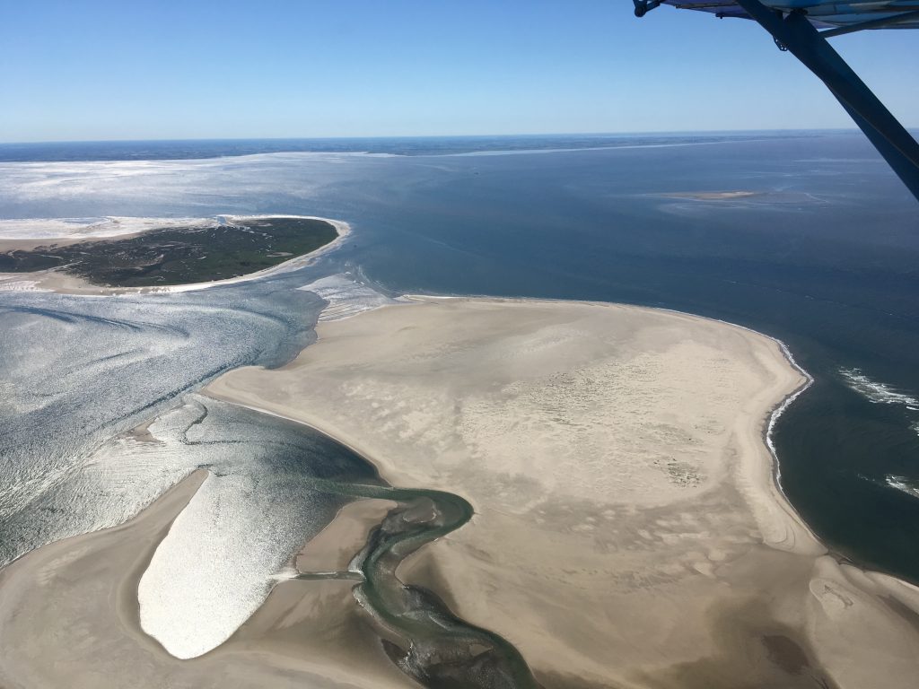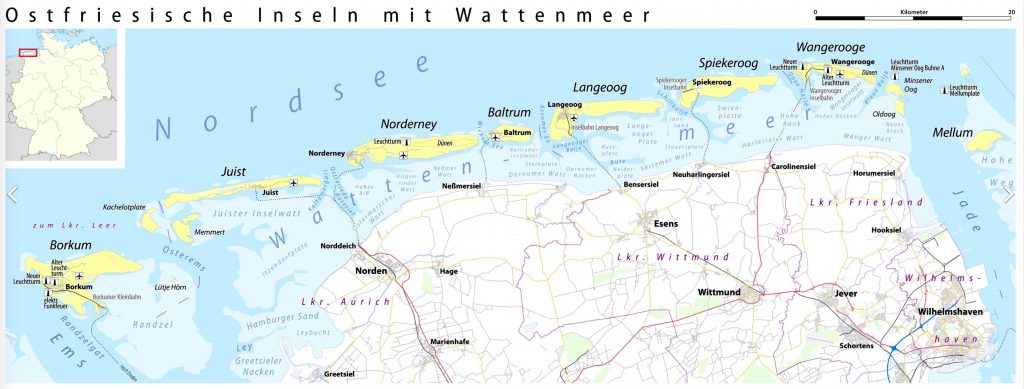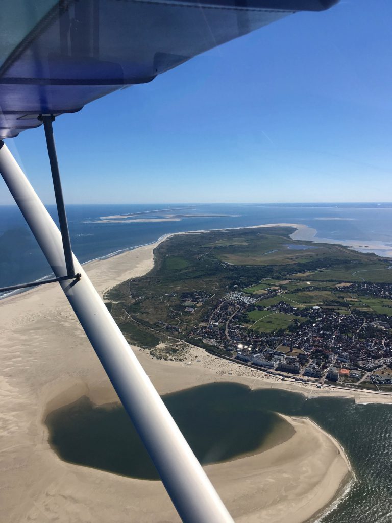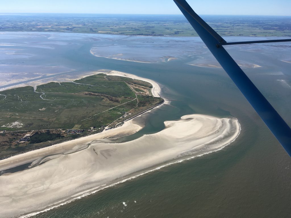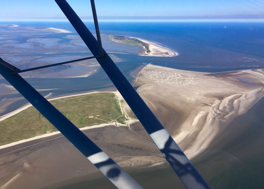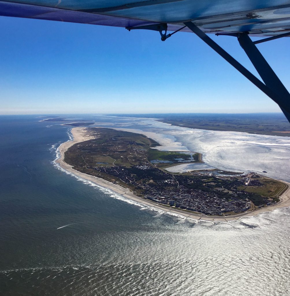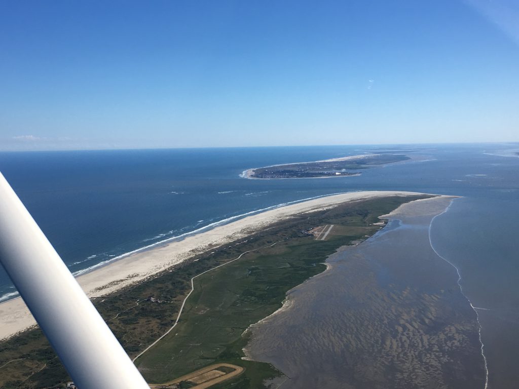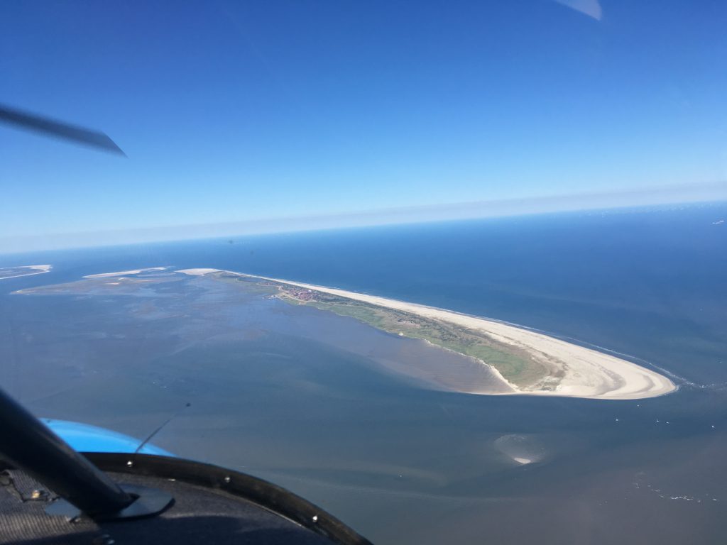 La série de photos commence en prenant les iles, côté nord, d’est en ouest pour limiter au mieux possible les reflets. Le survol s’étend sur 80 km, d’abord Wangerooge, Spiekeroog, Langeoog, Baltrum, Nordeney, Juist pour finir par Borkum. Excepté la 2eme ile, toutes ont leur piste et chacune sa propre fréquence radio.