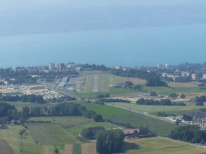 Lausanne “la Blécherette” a une fréquence ATIS et une fréquence en auto-information. C’est la 18 en service, vent arrière face au lac, base sur la ville et atterrissage mouvementé.